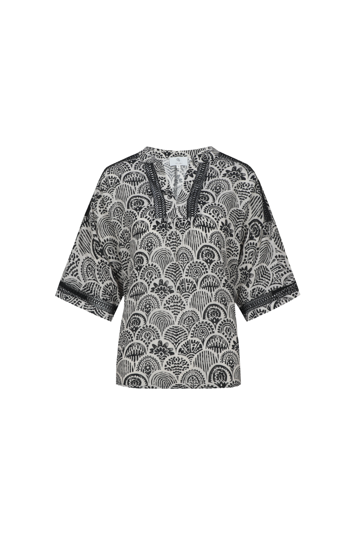 De Lajla top is een luchtige top met een verfijnde en zomerse uitstraling. Het model heeft een V-hals met decoratieve details en korte, wijde mouwen, wat zorgt voor een ontspannen en vrouwelijke fit. De all-over print geeft de top een speelse en frisse touch, terwijl de lichte stof prettig draagt op warme dagen. Perfect te combineren met een pantalon of short voor een stijlvolle, moeiteloos zomerse look.